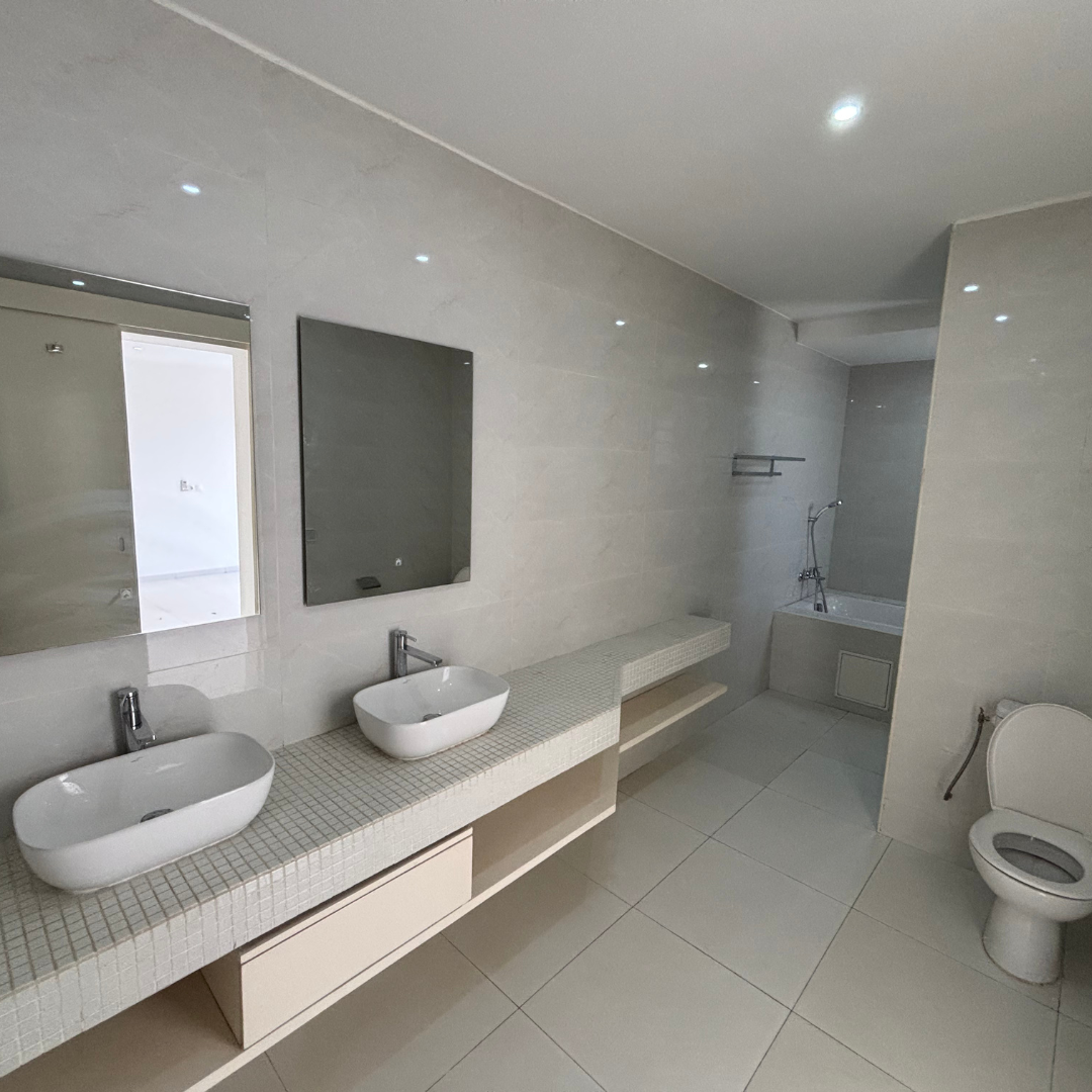 Très belle villa duplex moderne de 7 pièces en location ou vente dans les rosiers, route de Grand-Bassam. Toutes les pièces sont équipées de splits y compris la cuisine. Cité entièrement sécurisée.